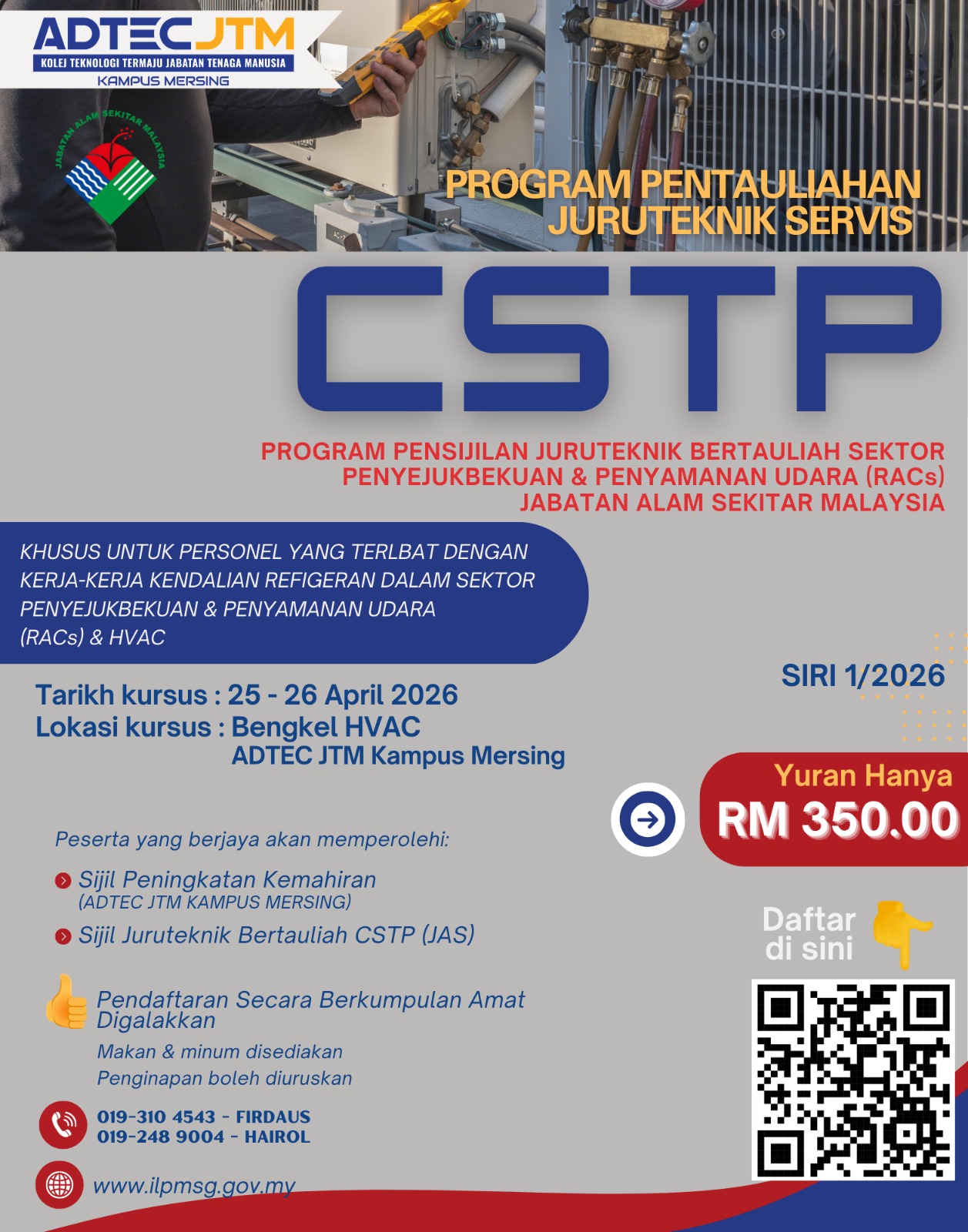 KURSUS JANGKA PENDEK TAHUN 2026 BIDANG TEKNOLOGI HVAC DI ADTEC JTM KAMPUS MERSING